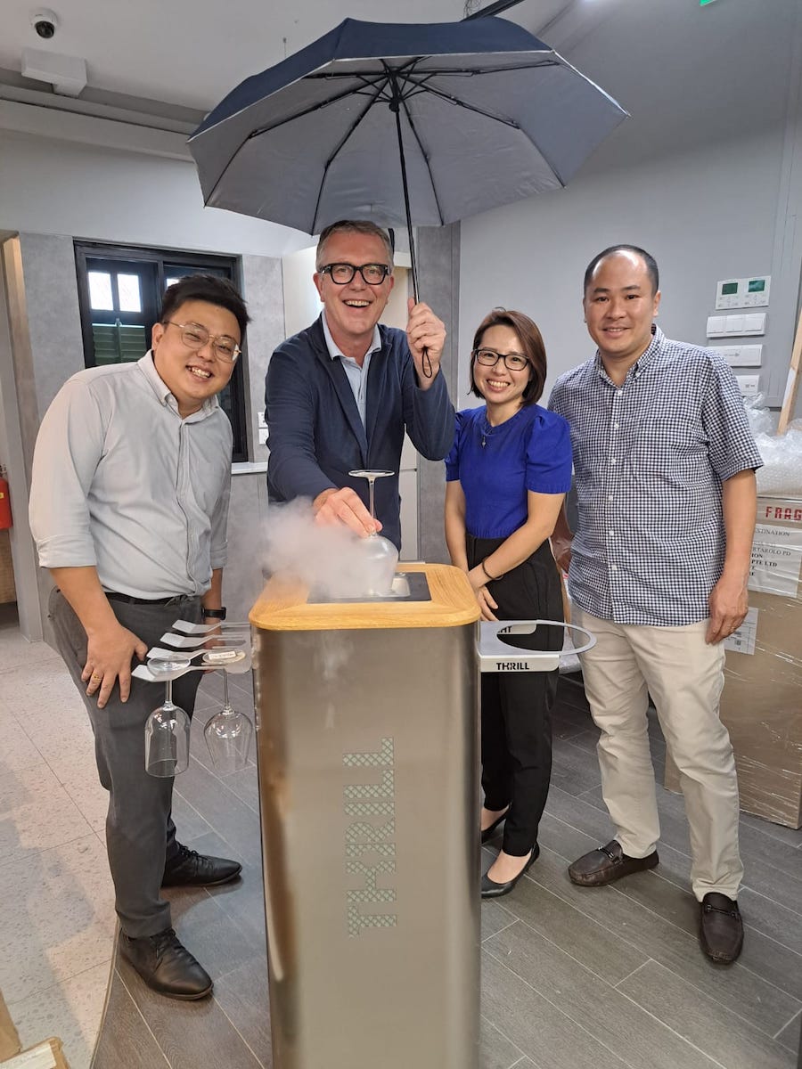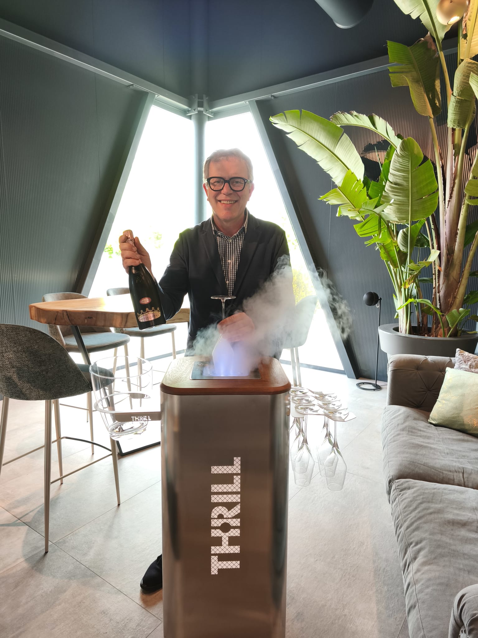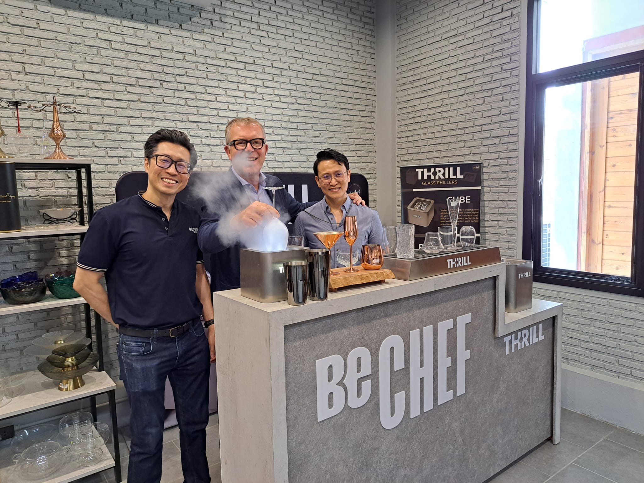 Thrill International nasce nel 2014 con il progetto di sviluppare un'apparecchiatura professionale di alta qualità ed affidabilità, per raffreddare e sanificare bicchieri utilizzando lo shock termico della CO2.