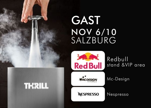 You will find Thrill International products in the REDBULLstand and VIP area(07-0102, 07-0200), in Mc-Design stand (02-0117, 02-0109) and in Nespresso stand (10-0117,10-0126) where the Espresso Martini will be prepared and served!