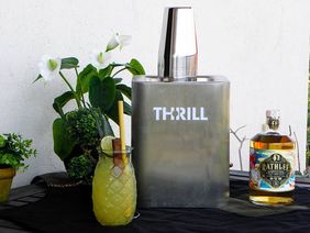 Metti tutti gli ingredienti in uno shaker con cubetti di ghiaccio e agita. Versa il tutto in una tiki mug con ghiaccio tritato, guarnisci con foglie di ananas, una fetta di lime, barretta di cioccolato e una cannuccia, spremi la tintura & e gusta responsabilmente! Ricorda di sanificare il tuo bicchiere e le tue attrezzature con Thrill!