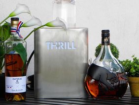Raffredda e sanifica il tuo bicchiere con Thrill. Aggiungi tutti gli ingredienti nel bicchiere con cubetti di ghiaccio e mescola. Filtra il composto in un bicchiere da coupé, versa la tintura, guarnisci con un zest d'arancia e bevi responsabilmente!