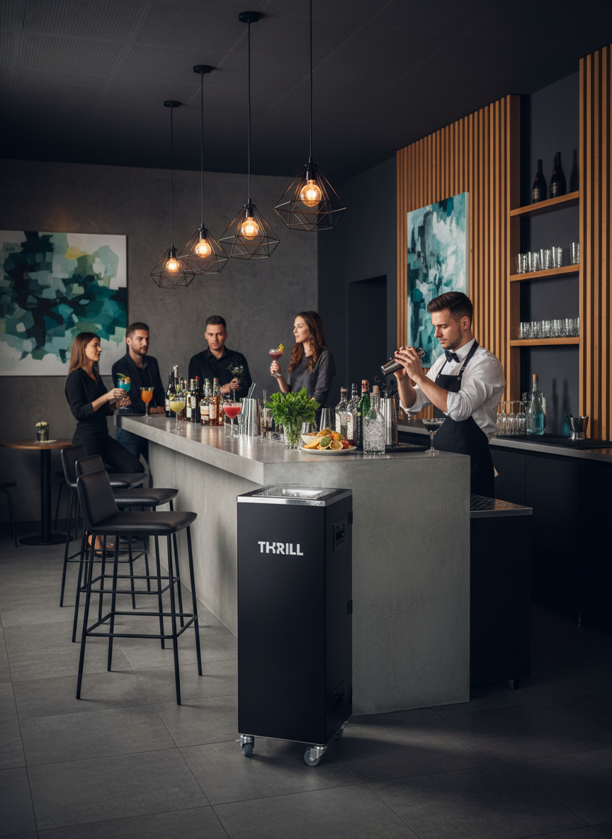 Che si tratti di un evento esclusivo in casa, di un cocktail bar alla moda o della lounge di un boutique hotel, l’ospite diventa partecipe della preparazione, vivendo in prima persona un rituale moderno e coinvolgente. Freschezza, igiene e valorizzazione della bevanda si fondono con l’estetica e l’innovazione, confermando la vocazione di THRILL INTERNATIONAL all’eccellenza.